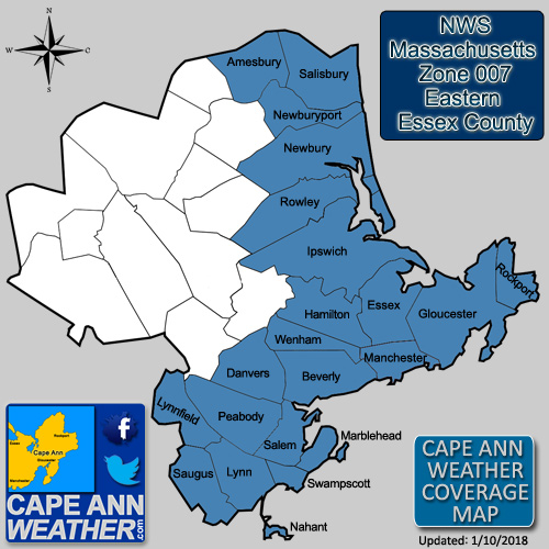 · Cape Ann Weather (Twitter, Facebook or .com) covers Eastern Essex County (NWS Zone 007) and the North Shore