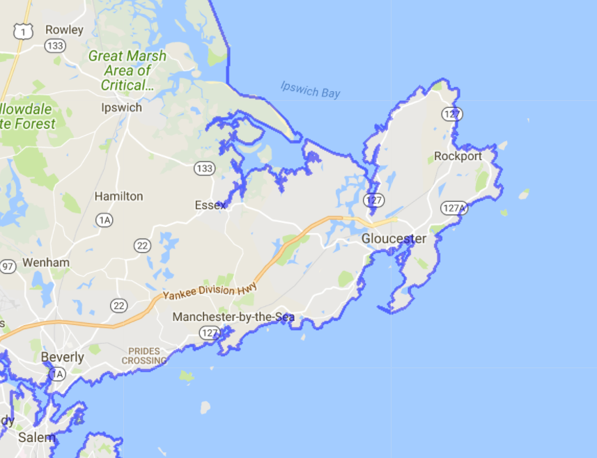 area of Boston, Massachusetts from Revere to Salisbury, Rowley to Rockport.